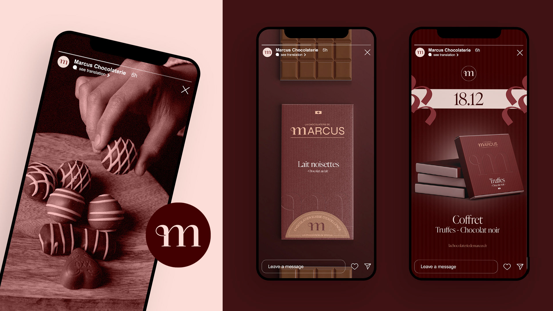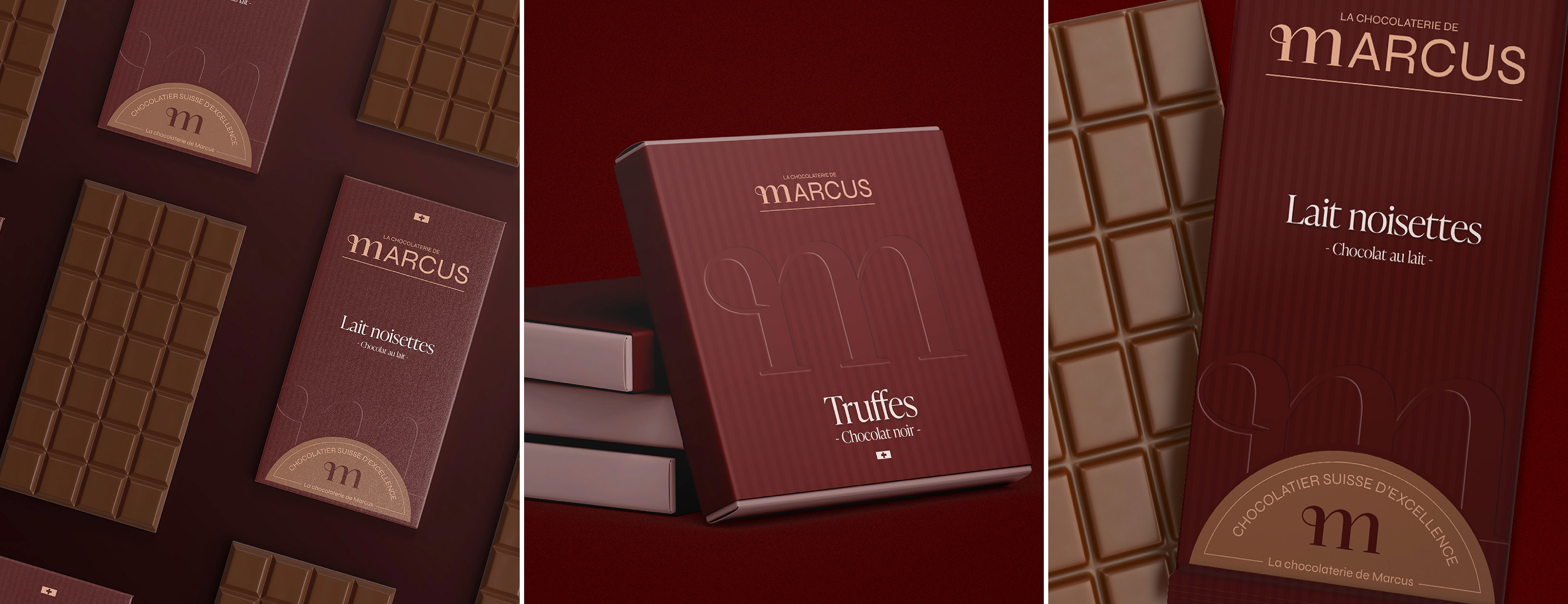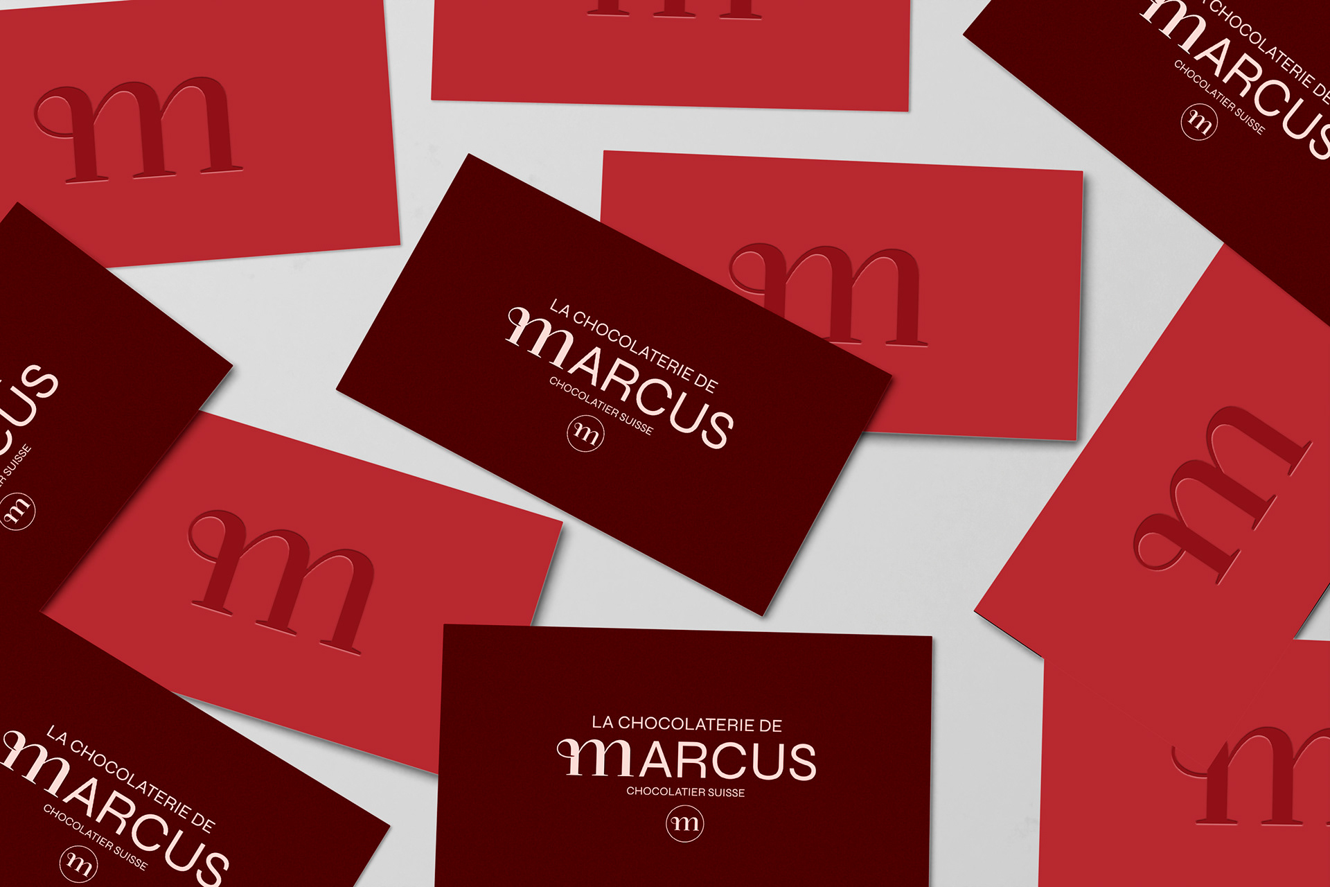 L'identité visuelle que j'ai créée s'articule autour de trois grandes valeurs : - le savoir-faire - l'artisanat - la précision Elles donnent à cette identité un sens, une direction, une authenticité. Ici, l'expertise et L'humain sont chers à Marcus. Le savoir-faire est un aspect essentiel qui trouve toute sa place. Léger, soigné, haut de gamme. Le logo arbore une police de caractères lisible et accessible, accompagnée d'une palette de couleurs suscitant ses innombrables saveurs. Intense, douce, surprenante. Et parce que son logo doit pouvoir s'intégrer efficacement quel que soit son support, il a été pensé comme une signature, faisant émerger la première lettre de son prénom. Une signature gage de qualité et d'authenticité. Facilement déclinable, elle porte l'ADN de la chocolaterie avec ses valeurs.